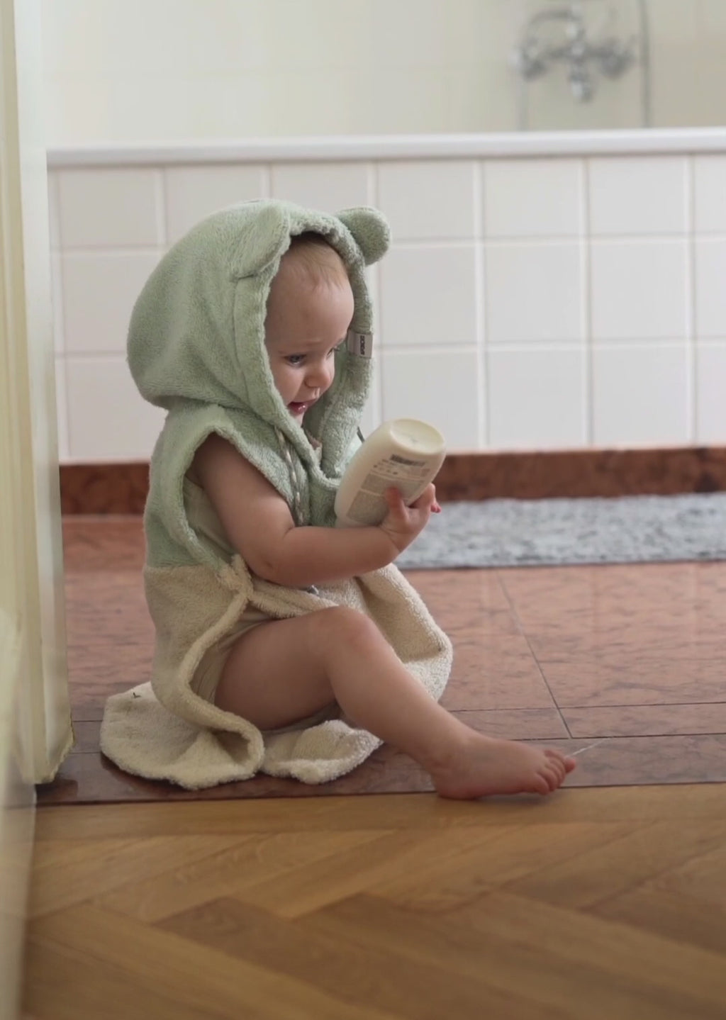 Nachhaltiger Badeponcho Baby Altgrün