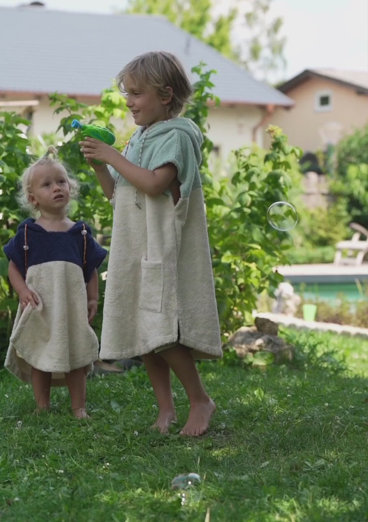 Der neue Stoff unserer Kids-Ponchos ist so wunderbar weich, dass sich deine Kleinen darin einfach rundum geborgen fühlen. Hergestellt in unserer nachhaltigen portugiesischen Manufaktur – aus OEKO-TEX-zertifizierten Materialien.
